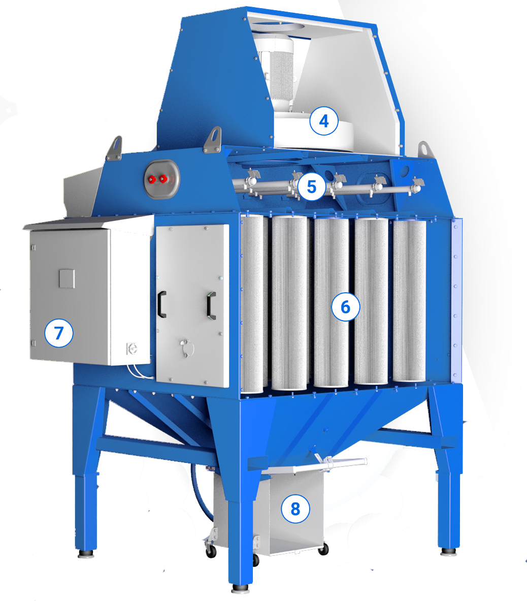 Автоматическая чистка фильтрующего элемента, пыль оседает в пылесборнике